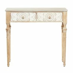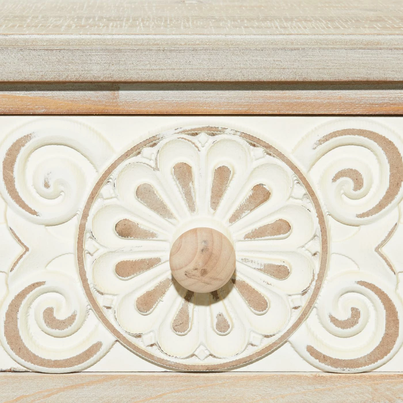 - Features carved floral and acanthus patterns