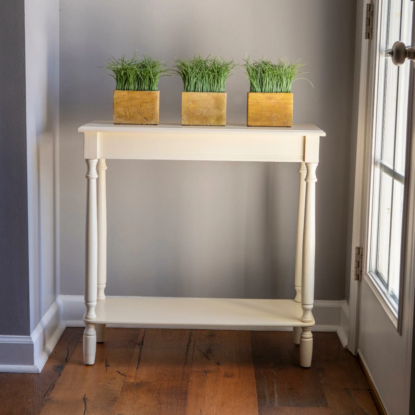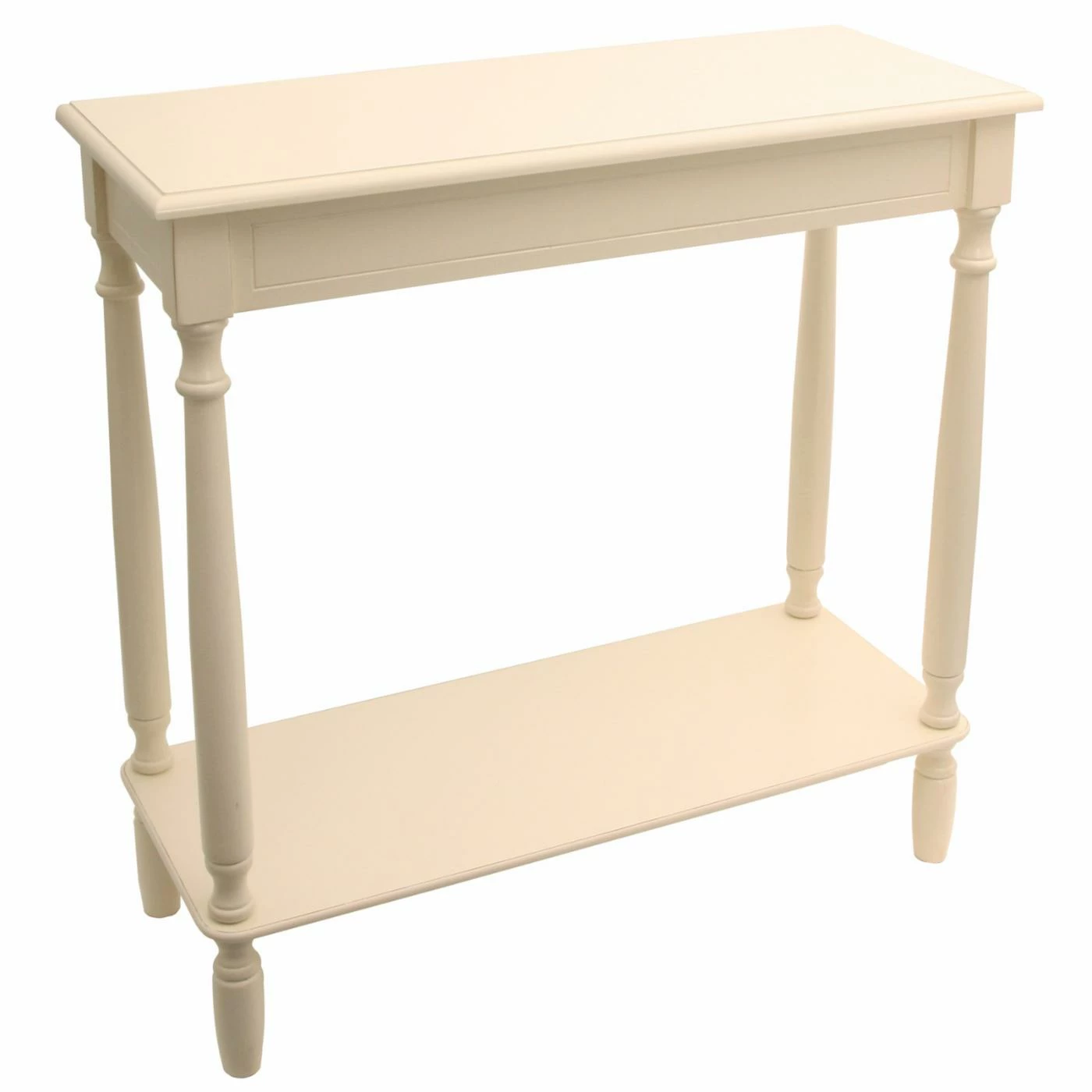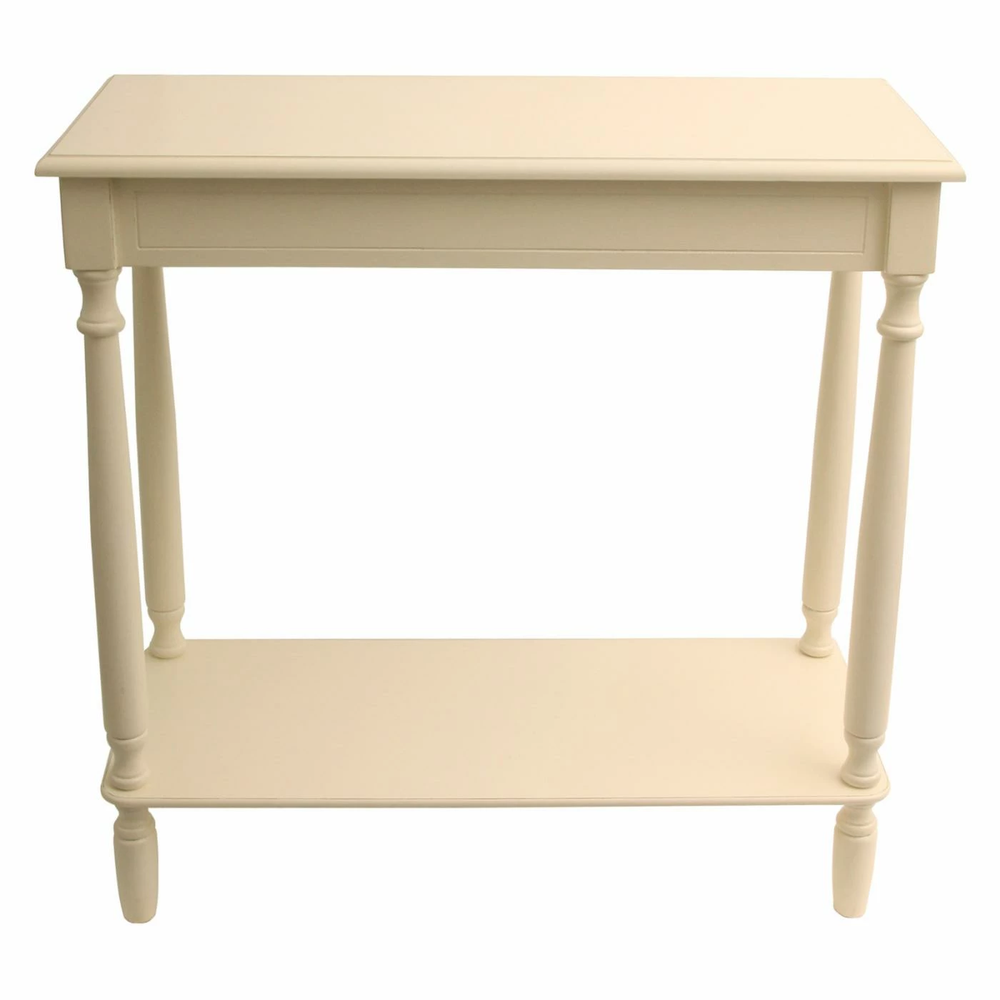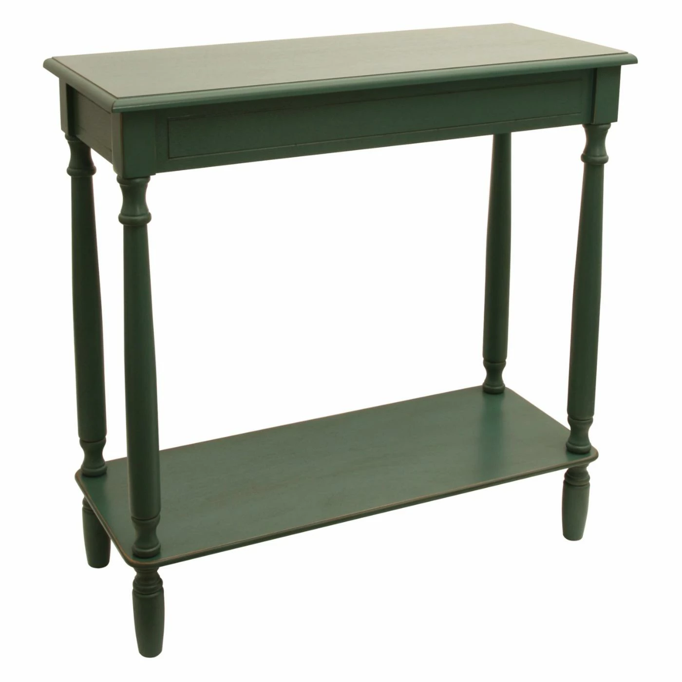Introduce display space and style with this Decor Therapy Antique Rectangle Console. It boasts timeless turned legs and is available in finish options that work with any dΓ©cor. This console table is slender, stately, and spacious, making it perfect behind your sofa, in a hallway, or in the foyer. It’s built of solid wood and offers two levels for display.