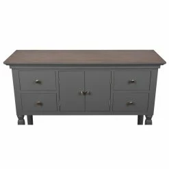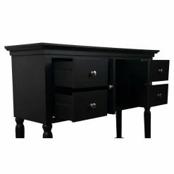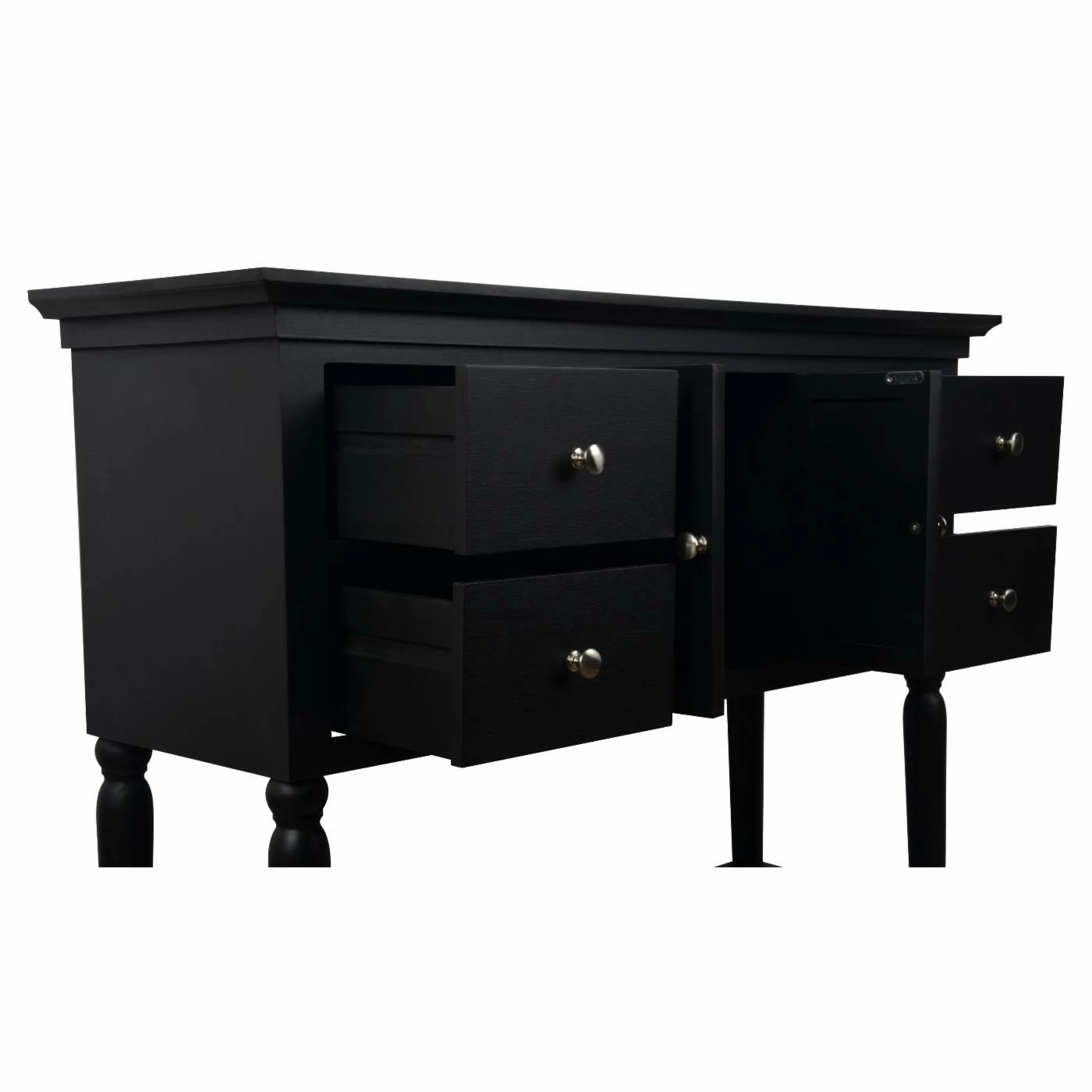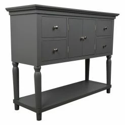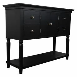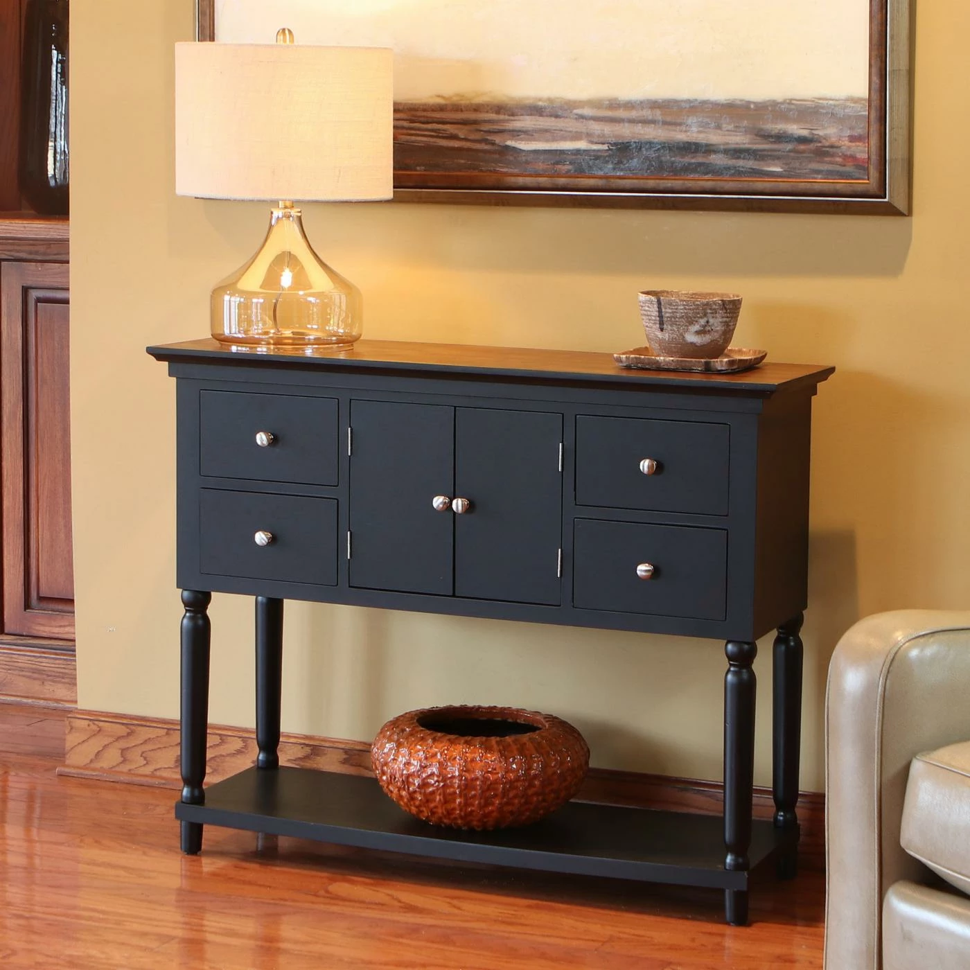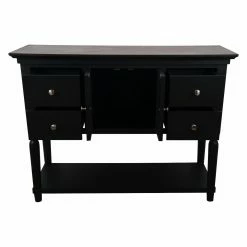 The Decor Therapy Taylor Four Drawer Console Table is a chic transitional piece that’ll blend seamlessly with your existing furnishings. Its center cabinet opens to reveal a large storage space complete with a center shelf that’s perfect for holding books, movies, linens, and more. Use the four storage drawers to organize your pens, pencils, and office supplies, so they’re out of sight but easy to reach. The large bottom shelf and broad top makes it simple to add a personal decorative touch to this console table. Crafted from sturdy engineered wood, this piece is built to last. Choose from the available finish options.