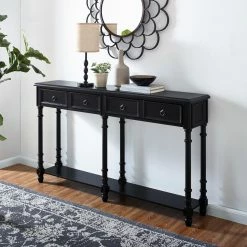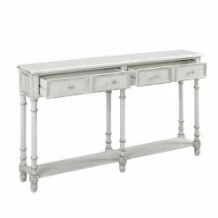The HomeFare 2 Drawer Hall Console Table adds storage and functionality to your favorite spaces. This wood console table stands on six elegantly turned legs and comes in select color options. For storage, two drawers come built into the table’s face. A lower shelf runs the width of the base.