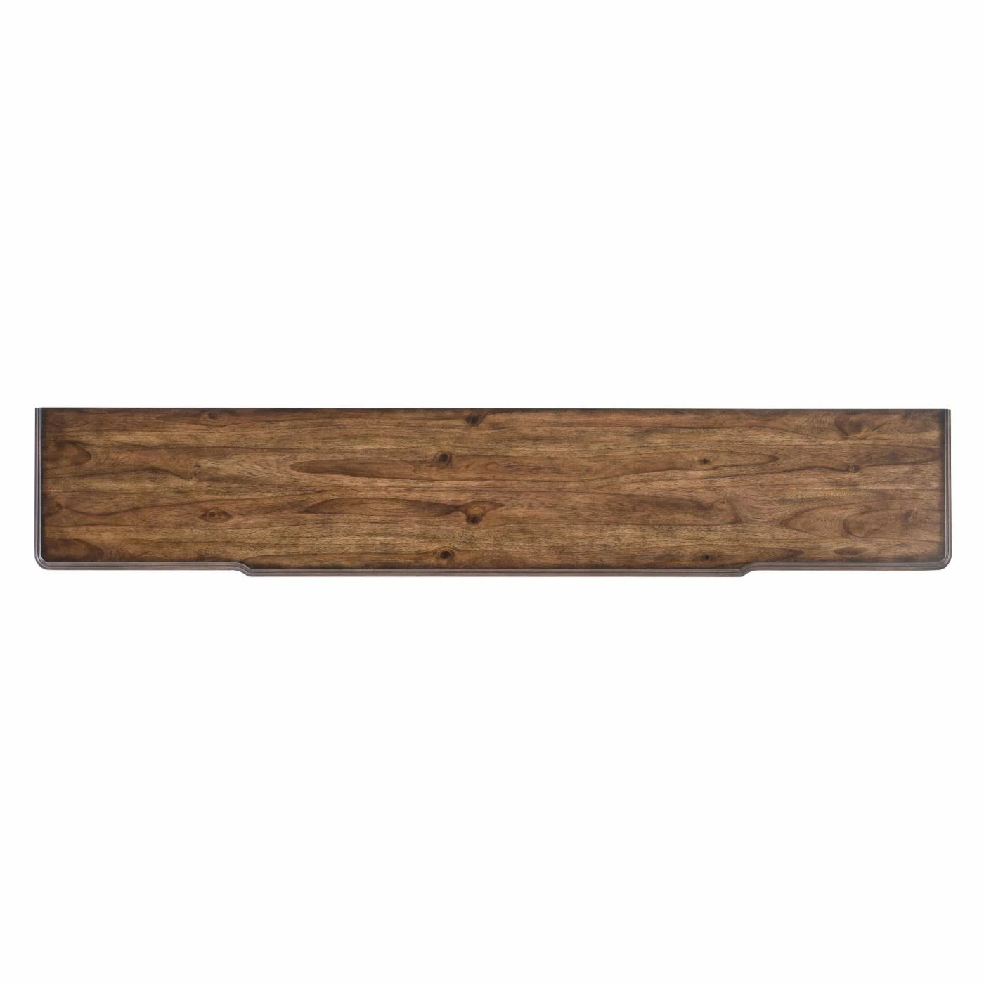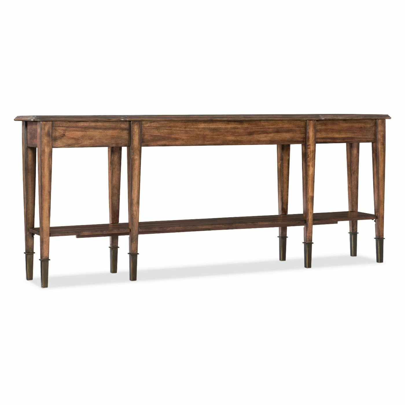 A concealed drawer in each end plus a lower display shelf makes the Hooker Furniture 4 Leg Skinny Console Table a smart and chic addition to your entryway or living space. This tall and slim console table is built of birch and acacia in a multi-step medium wood finish. It stands on dramatically tapering legs that end in metal ferrules.