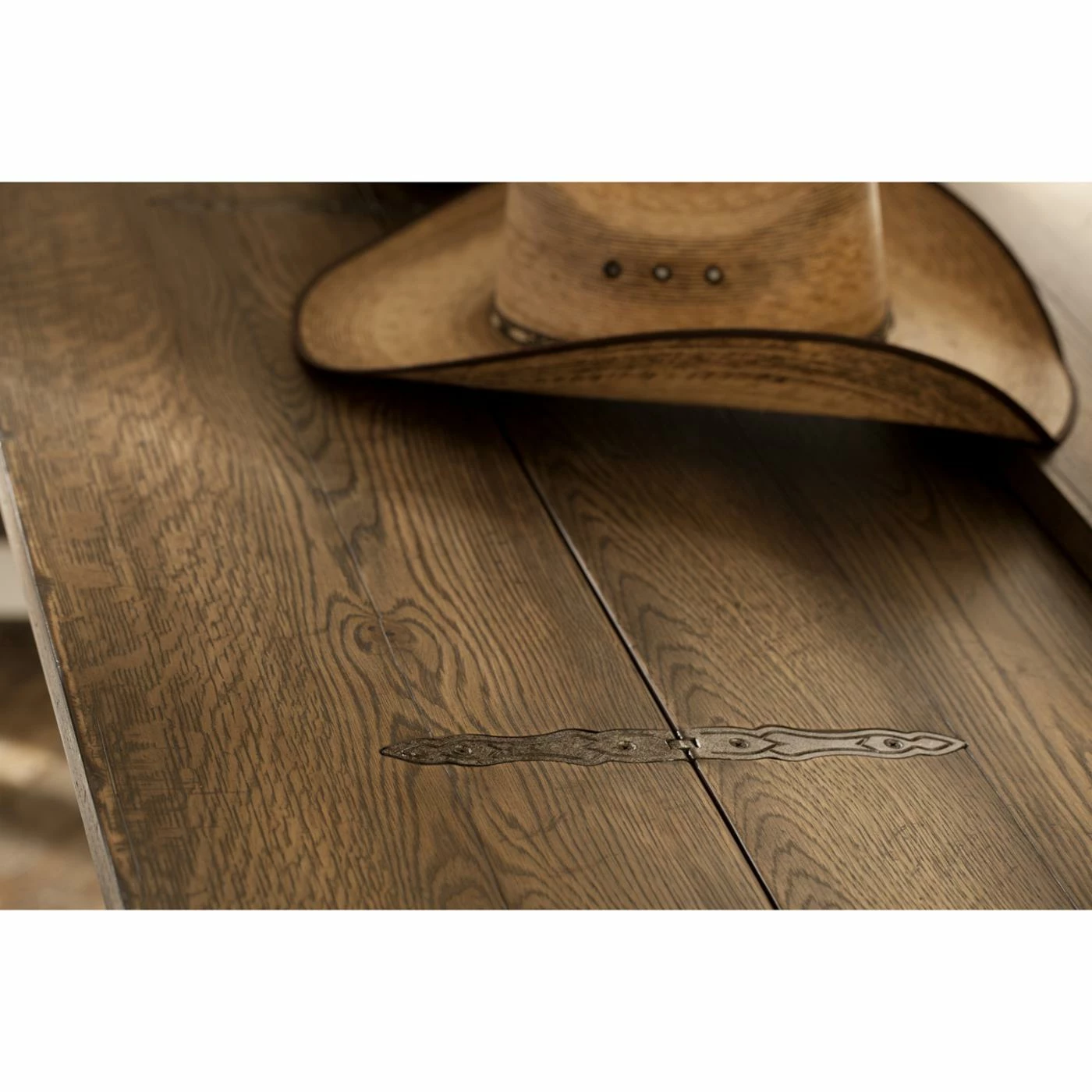 The Hooker Furniture Hill Country Bluewind Flip-Top Console Table has a simple form with a versatile design that can easily place it in any room in your home. This table is crafted from solid poplar hardwood. White oak veneers with a hand-rubbed finish of saddle brown gives it an old-world feel. The top features three fold-down leaves that move on custom-made metal hinges. When they’re unfolded, this narrow table expands to a size that could be used as a writing desk or small dining table. Just beneath the tabletop is a pair of drawers with hand-forged metal pulls in a pewter finish. Lathe-turned, spindle-style legs add a classic touch to the design.