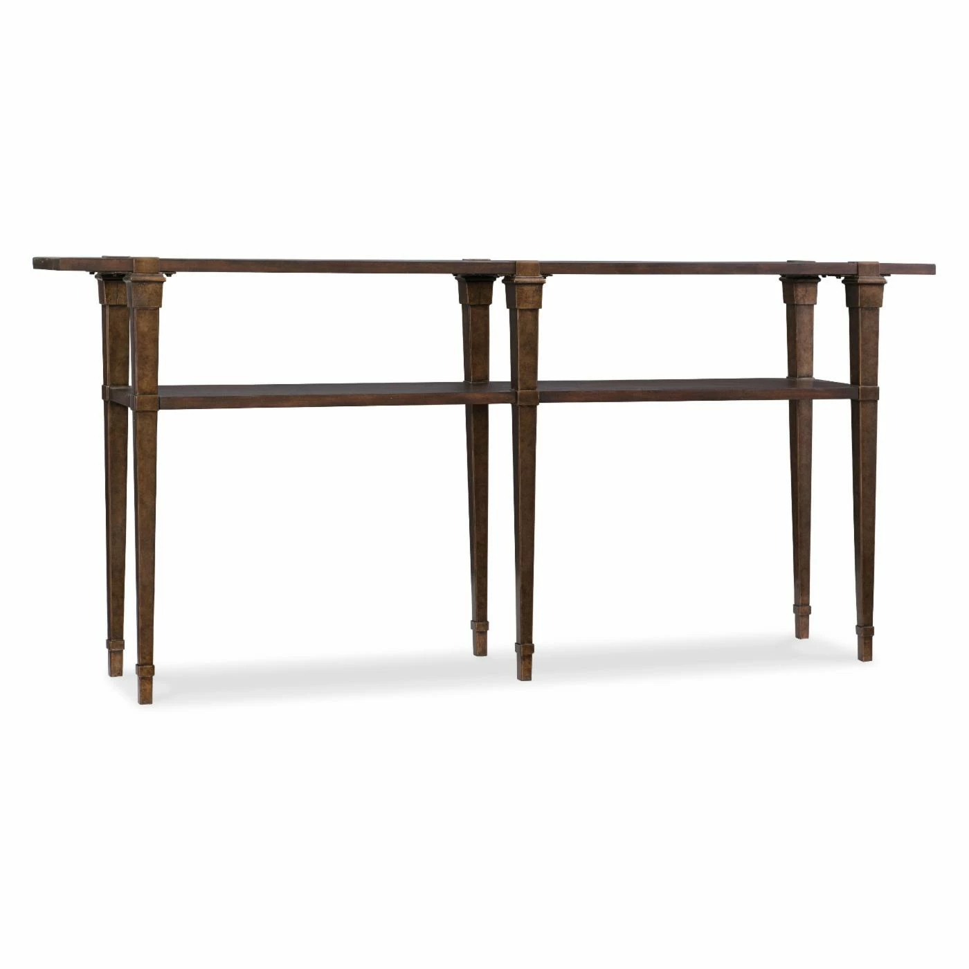 Even with a thin silhouette that’s barely there, the Hooker Furniture Skinny Console Table makes a bold style statement in most any space. And thanks to its slender design, it’s a fashionable fit most anywhere, from a hallway to a compact living space. The console table is crafted of solid hardwood with acacia veneers in a dark wood finish. You’ll find metal and resin accents throughout, and a full-length lower shelf is sized just right for a home accent or two.