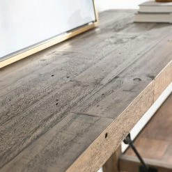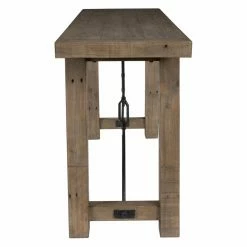 Add a little bit of extra flair to your living space with the Kosas Home Tuscany Reclaimed Pine Console Table. This slender table is perfect for displaying plants, photographs, and your favorite knick knacks in spaces without a lot of wiggle room. Made from solid, reclaimed pine wood, this table can stand the test of time. A diagonal metal turnbuckle support detail seems to hold the table together and brings a little bit of industrial edge to this modern farmhouse piece. Some assembly required.