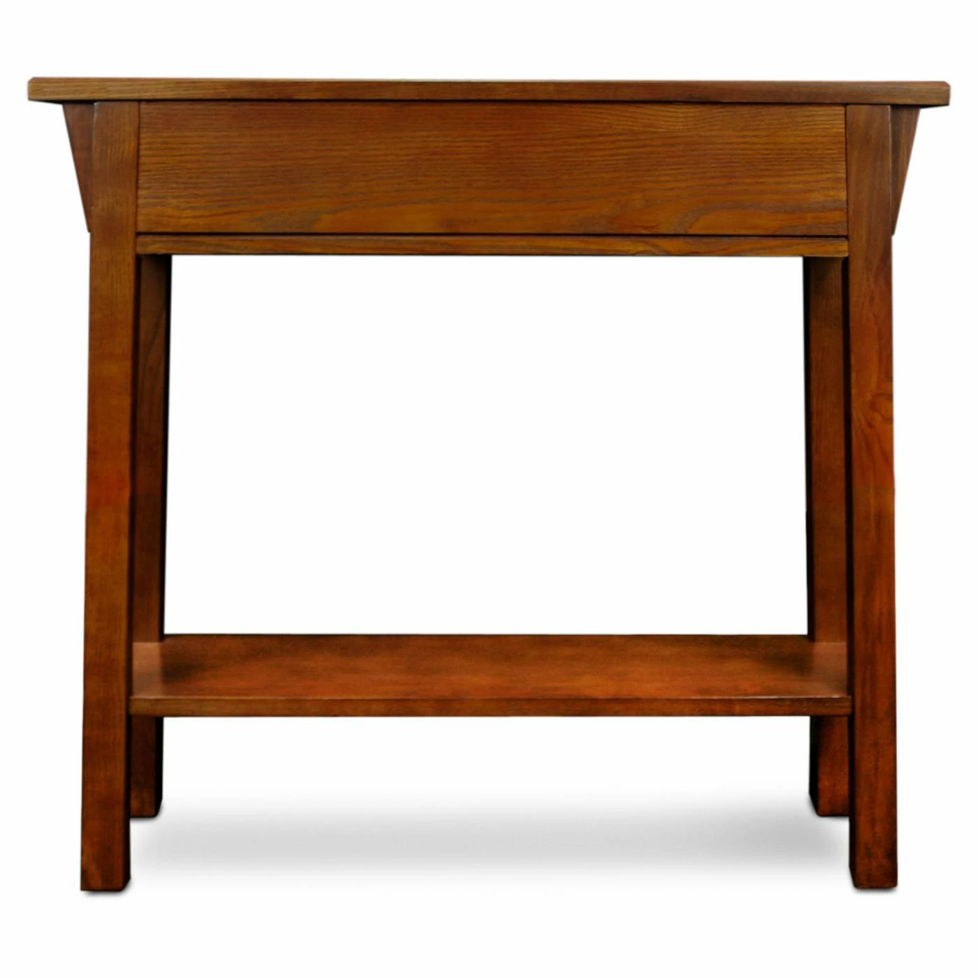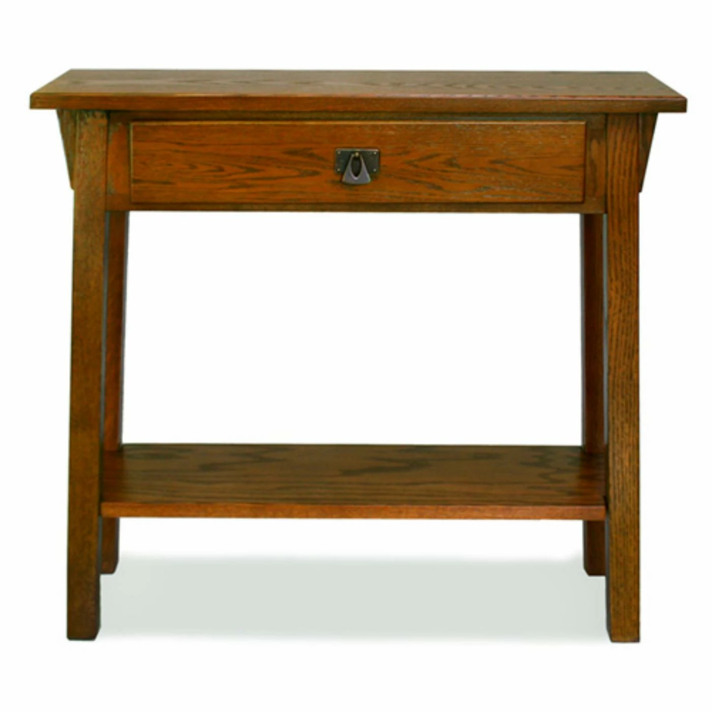 Add a touch of elegance to your home decor-style with the Leick Home 9057-RS Favorite Finds Mission Hall Stand. Featuring a solid ash and oak veneers construction, this Mission-styled stand is sturdy enough to withstand the wear and tear of daily use. The canted post and wedge corbel provide additional stability to this hall stand. Smooth glides make opening and closing of the durable wooden drawer box easy and hassle-free. A rich russet finish and blackened metal hardware add to the visual appeal of the table.