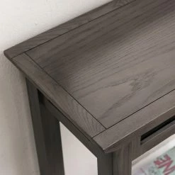 For a classic mission style, the Leick Home Hall Stand features black slate details and stands on tapering, notched legs. This sturdy table stands tall, slim, and wide, making it a good fit to your entryway or hall. It’s modernized by a smoke gray finish and includes a fixed, lower shelf to double its display spaces.