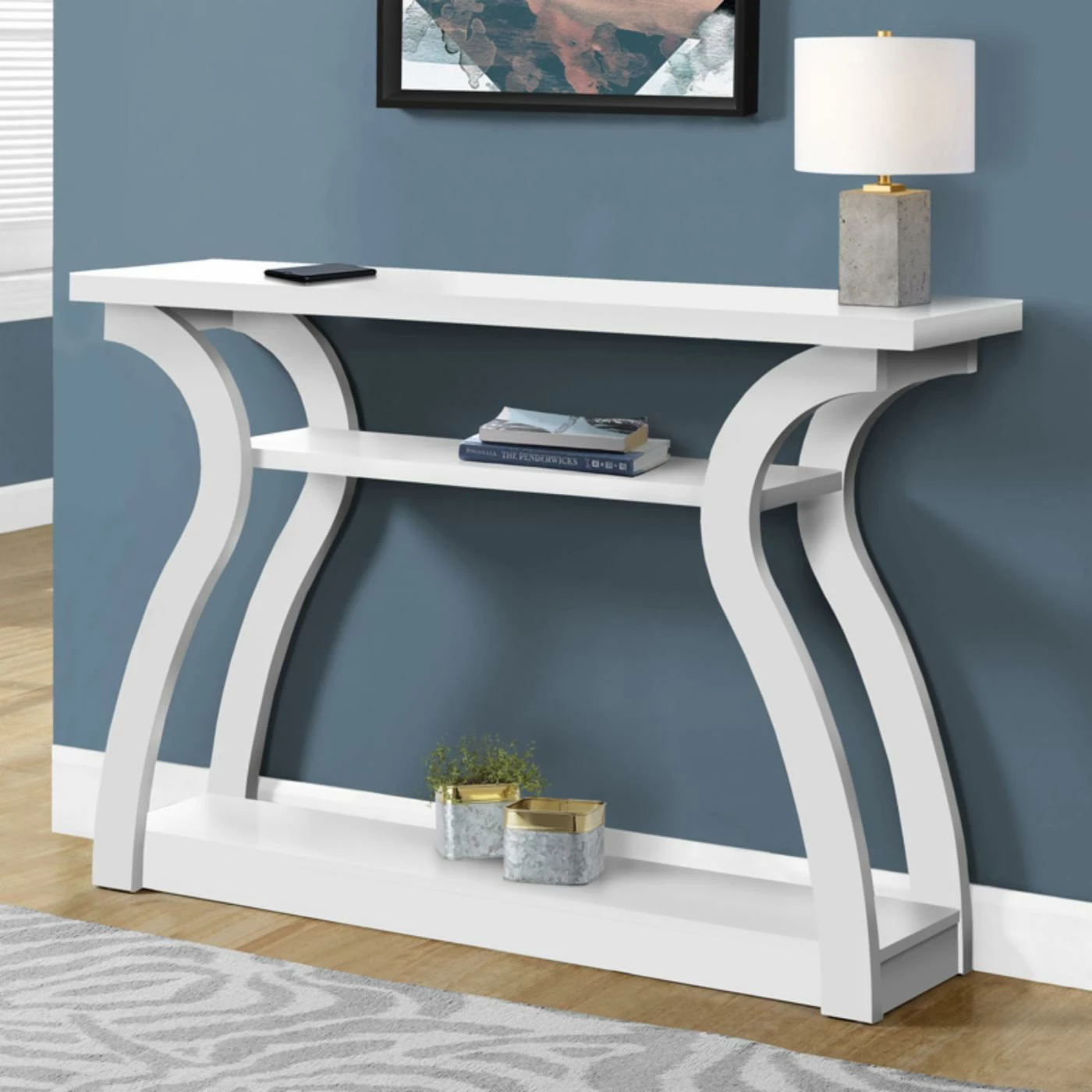 You have some pretty awesome decorative items in your home, so give them a great display with the Monarch Specialties Rectangular 3 Tiered Console Table with Curved Legs. This three-shelf table offers lots of open space for showing off picture frames, plants, bookends, and whatever else you can think of.