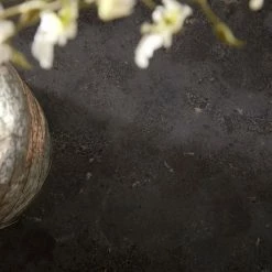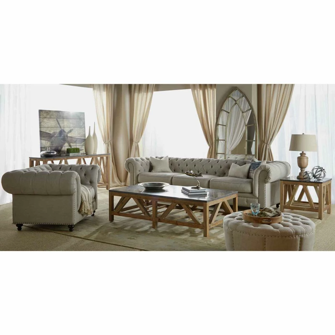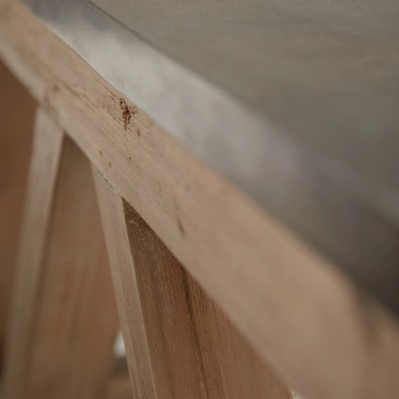 The Orient Express Furniture Blue Stone Console Table gives the impression of being crafted with reclaimed materials. Pine supports in a bare, natural finish are arranged architecturally, like floor joists or the trestle ceiling supports you’d find in an old barn. The Blue Stone top resembles smoky gray stone, but is impervious to moisture and stains.