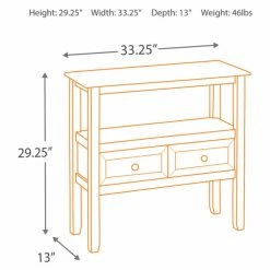 A beveled tabletop and two raised-panel drawer fronts give the Signature Design by Ashley Abbonto 2 Drawer Accent Console Table an elegant, timeless look. To bring out the natural grain of the solid acacia hardwood, the table bears a warm brown finish. You can store books, baskets, or bins on the open shelf or use the area to display decorative items.