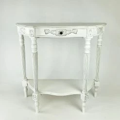 At the end of a long day, welcome yourself home to the warm, rich tones of the Wayborn 1 Drawer Console Table. Placed near your front entrance, this durable birch wood console table is the perfect place to shed the day’s worries. Place your keys or mail inside the single middle drawer to keep from accumulating clutter, and rest your bag on the lower shelf to keep it off the floor and out of the way. This table’s half-moon shape and ornate carved detailing give it an unassuming yet impactful look, ideal for more traditional style homes.